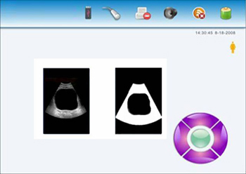 | Palm bladder scanner(PBS) is a medical device with high performance combined with B-mode ultra-modern technology and computer technology. The device consists of host and probe, it can speedily complete the detection of bladder area through scan of probe connected with the device, and transmit B ultrasound echo signal detected to embedded computer system after processing before computer identify the edge of image, volume calculation, and display relative information through LCD or built-in printer before achieve the examination of patient bladder and give you an effective comment in time during patient bladder treatment.