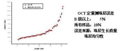 The measuring results of OCT layer quantitative pearl beads is in good agreement with the measurements results of high-resolution micro-scale , compared results including different levels, different colors and different varieties of pearl samples, showing that the technology is applicable to all types of nuclear pearl.