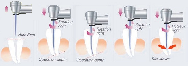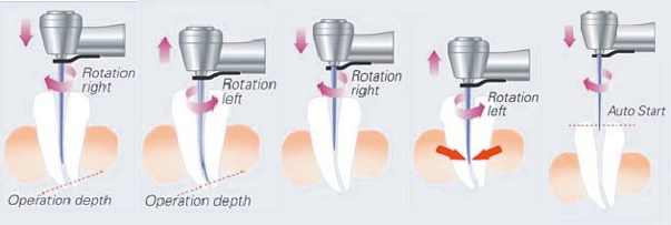 The file starts rotating automatically when inserted into the canal and stops automatically upon withdrawal