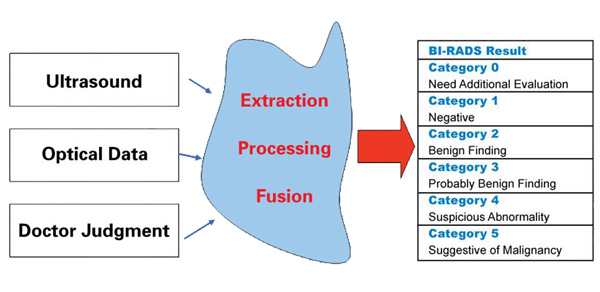 OPTIMAGE-Diagnostic Tools -Dual modality operation and visualization, simple and easy to use -Rich information about tumor blood and morphological characteristics, including hemoglobin(HBT), Oxygen concentration(SO2), tumor shape, lobe, and orientation, etc. -CAD provides standard results in compliance with BI-RADs -Easy and clear report generation, storage, and PACs compatible