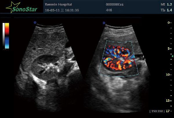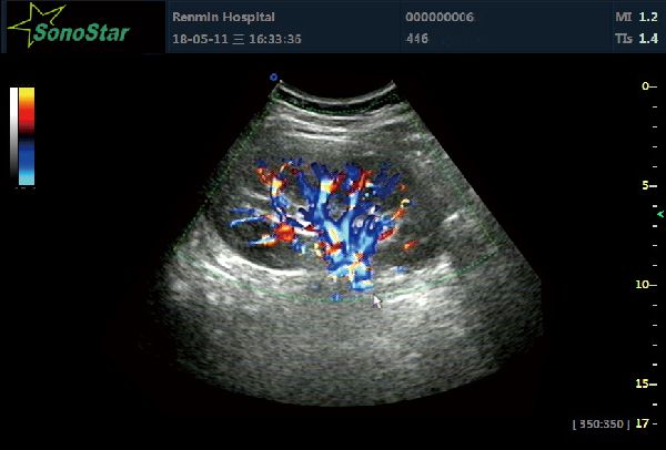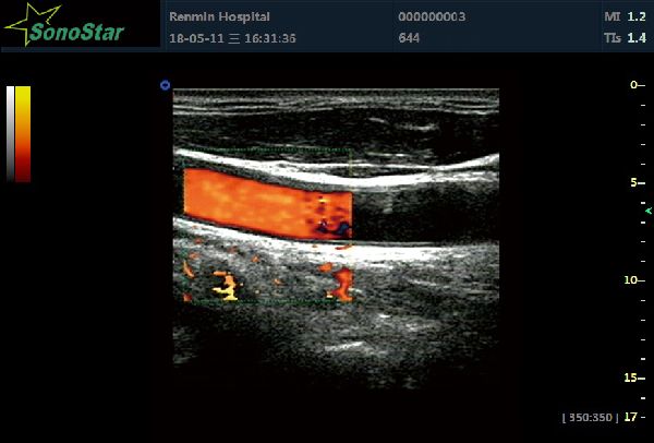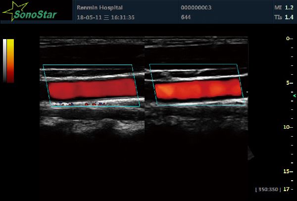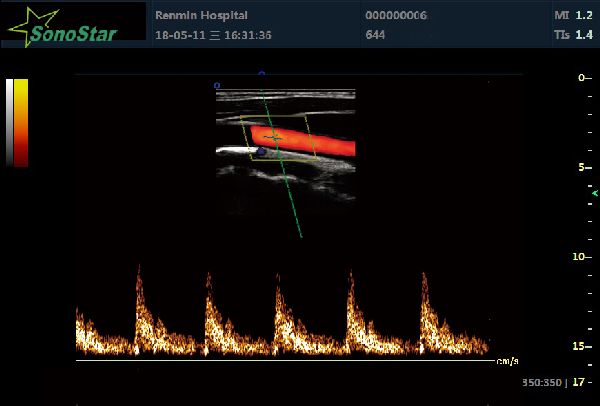 It’s a directive Doppler energy-gram, which is the combination of energy Doppler and color Doppler. This technology can combine the advantages of these two. It can display the speed and direction of blood stream, and can display the low speed and low-flow blood stream with Doppler energy-gram as well.