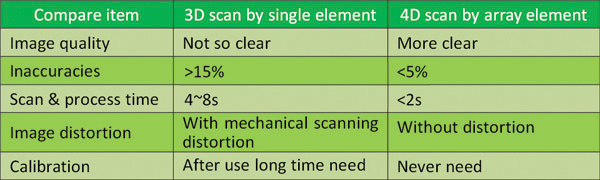 Product Advantages: - Only one probe, convenient for carry - Wireless, convenient for operation - 4D array scan, very clear image - High accurate (5% inaccuracies) - High speed on scan and process (2s) - Without distortion of mechanical scanning - More advanced algorithm, more powerful bladder wall recognition technology(High recognition rate for the bladder wall with air), more accurate contour technology, higher accuracy of the probe makes scanning results more accurate. - New algorithm, the measurement results are not subject to the bladder shape and size. No need to select Gender, Age group and no need to consider special cases such as the effect of hysterectomy on the measurement results. Good compatibility for different bladders, no Ubstantial error when measuring small volume or special shape bladders, easier to operate and use. - High precision rotary encoder, precise positioning, never need to calibration. - Waterproof probe.